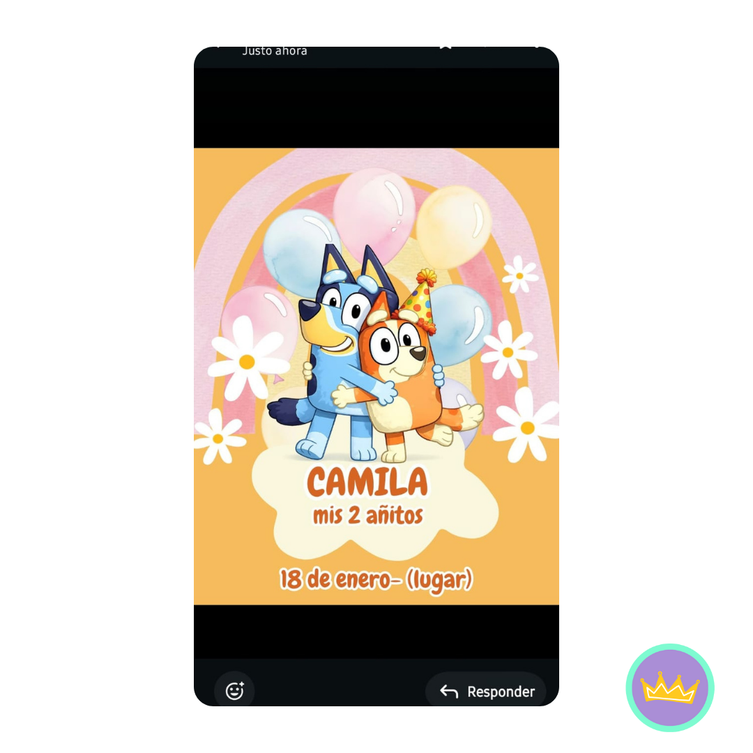 Inspirada en personajes Bluey y Bingo les dejamos esta hermosa invitación para compartir por redes sociales, Whatssap y otros medios. 🎉